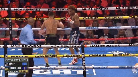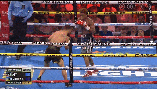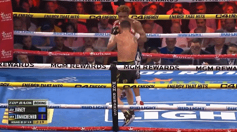Haney’s best punch behind his marvellous jab has always been a wide right to the body. Against Lomachenko he brought his elbow in and started digging it into the floating rib as Lomachenko tried to take his outside angle. In spite of the general consensus that Lomachenko deserved the nod, Haney’s right uppercut seemed to be the most telling blow of the fight, sometimes even stopping Lomachenko in his tracks.