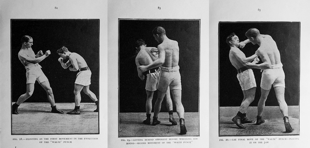 The Waltz is the technique for which Carpentier is remembered. Often it worked like an elbow pass in wrestling. A stiff parry high on the biceps, used to steer the opponent past you, combined with a step out to the right and behind them.