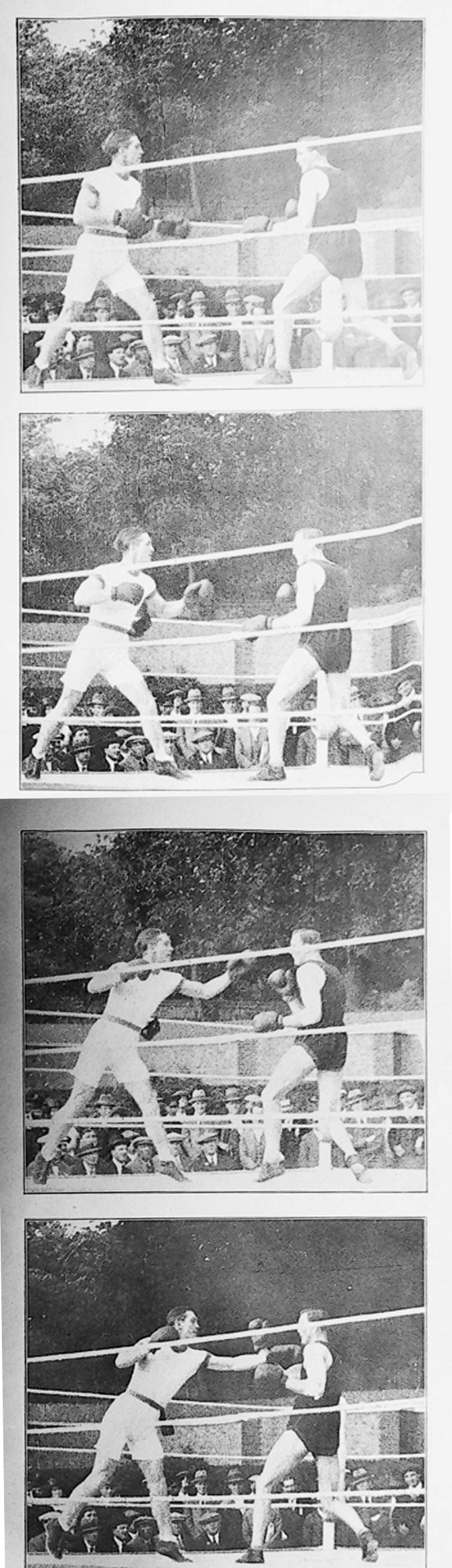 Carpentier states specifically that he used this technique against the great American infighter, Frank Klaus. Here are the instances from the Klaus fight.