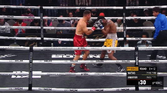 Pressure is Matias’ stock and trade. He moves forward, he presses to the inside, and he unloads with both hands until the opponent falls or gives up. Every fight that he has won, he has sent the fans home early, and the one fight he lost he promptly avenged by beating Petros Ananyan into a ninth round TKO.